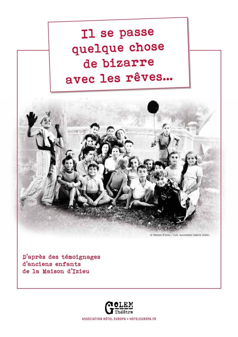 À partir des témoignages d’anciens pensionnaires de la colonie d’Izieu, la compagnie Golem Théâtre propose une création émouvante consacrée aux enfants accueillis à la Maison d’Izieu pendant la Seconde Guerre mondiale. Écrite par Fréderika Smetana à partir des récits d’anciens enfants de la colonie d’Izieu, la pièce fait entendre la mémoire de ces jeunes réfugiés venus de toute l’Europe.